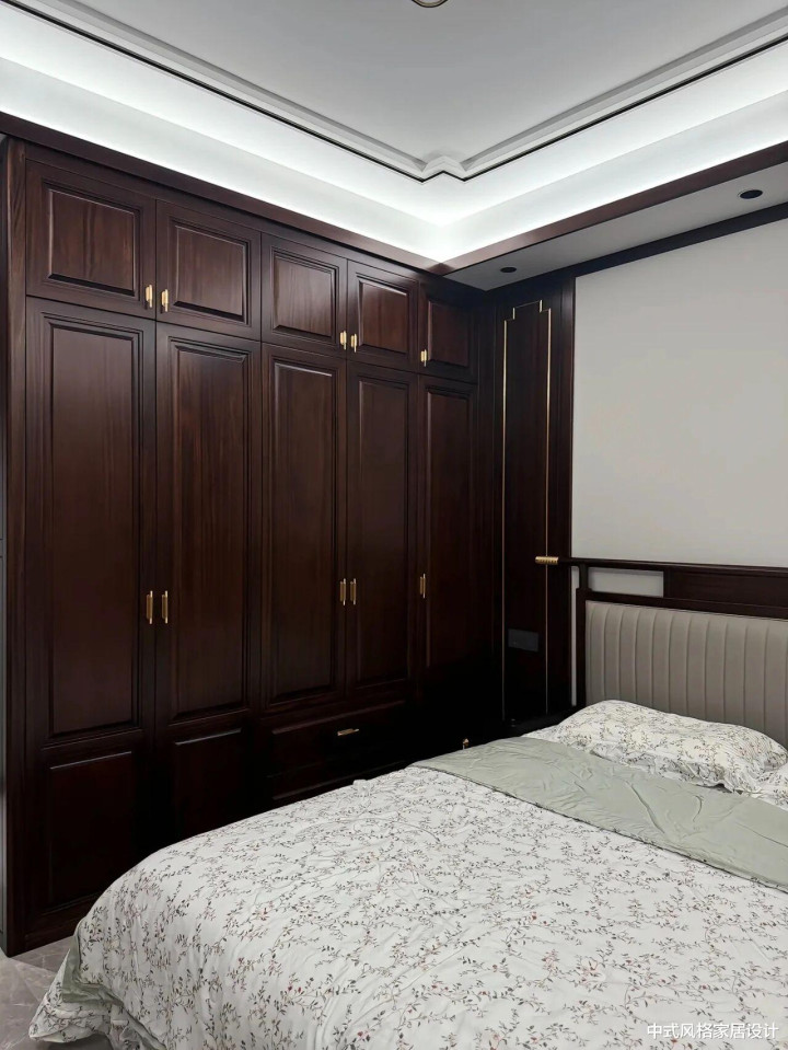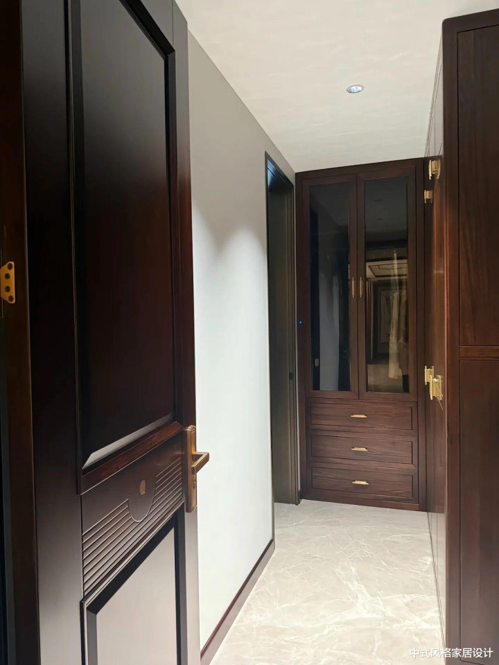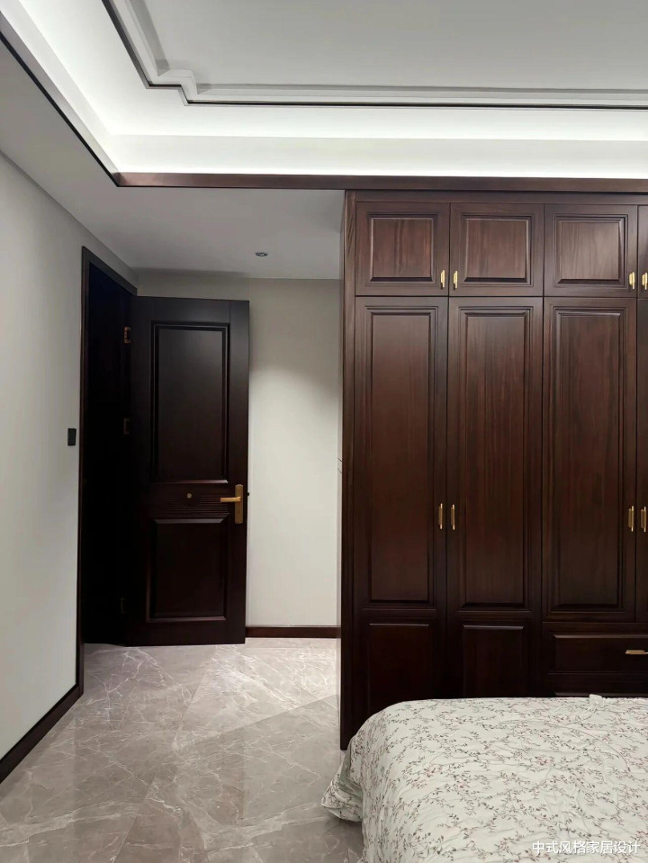 深色胡桃木,线条极简,木料的当然纹理。装置好的阿谁下昼,阳光正巧斜射进来,在木纹端淑淌。